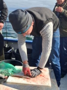 Selvom det ruskede en lille smule ret udfor Spodsbjerg havn, var vinden allerede løjet en del af ved ankomst på første spot. Der var fisk i båden allerede på første drev, hvilket lovede rigtigt godt.