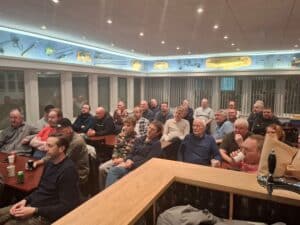 Der var heller ingen tvivl om at medlemmerne i BLB vidste hvem Frank var, for der var ret fyldt i klubhuset kl 19.00 allerede. Ialt fik vi med lidt godt kammeratskab presset 40 medlemmer ind inden Frank gik på kl. 19.30.