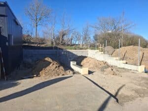 Den første del op mod det gamle årehus som værnemagten var så venlige at efterlade BLB, blive et aflukket rum for opbevaring af bl.a. havemøblerne i vinterperioden. Ved siden af bygges der et nyt område for containere. Let afdækket så de er gemt lidt af vejen.